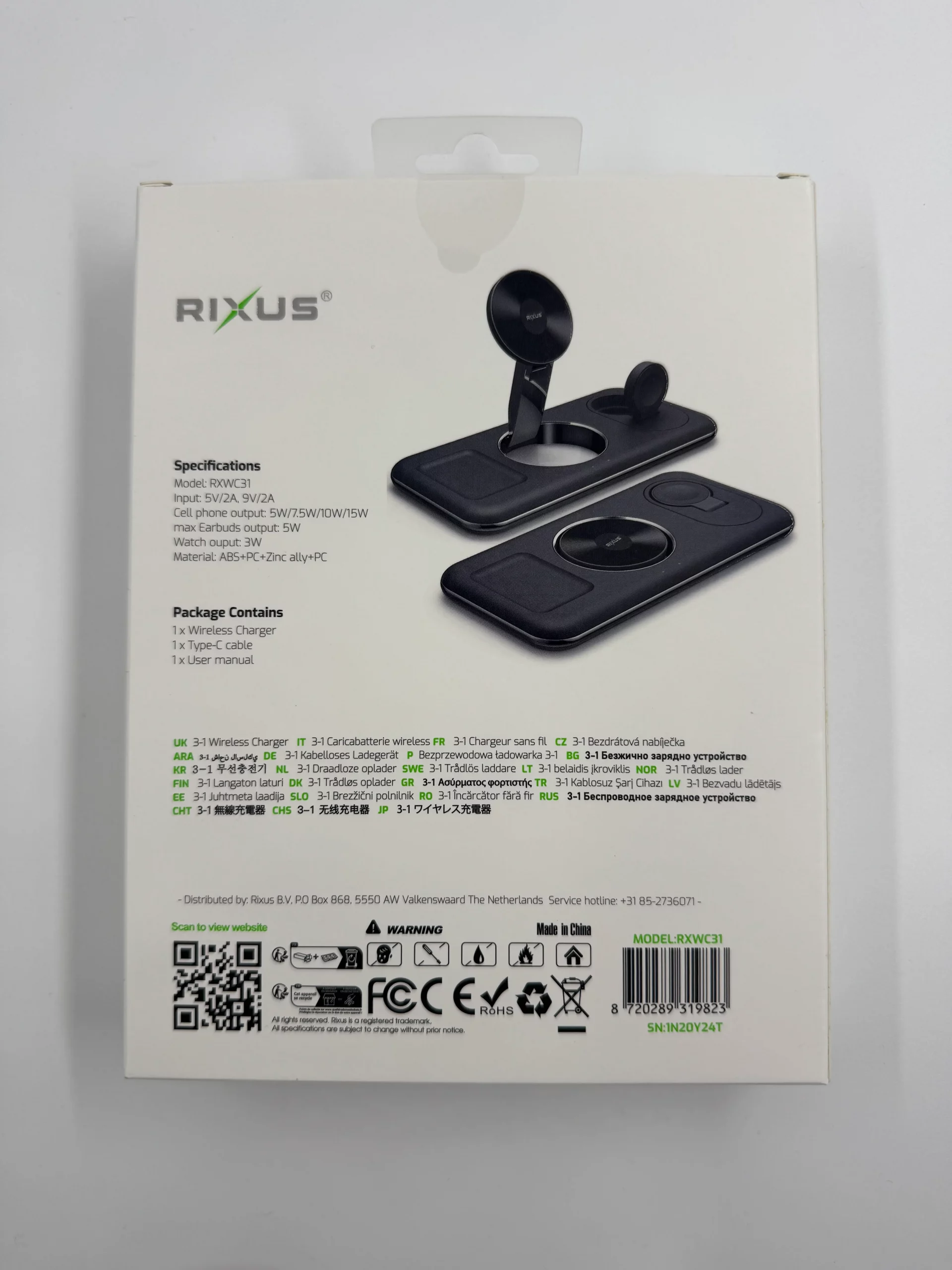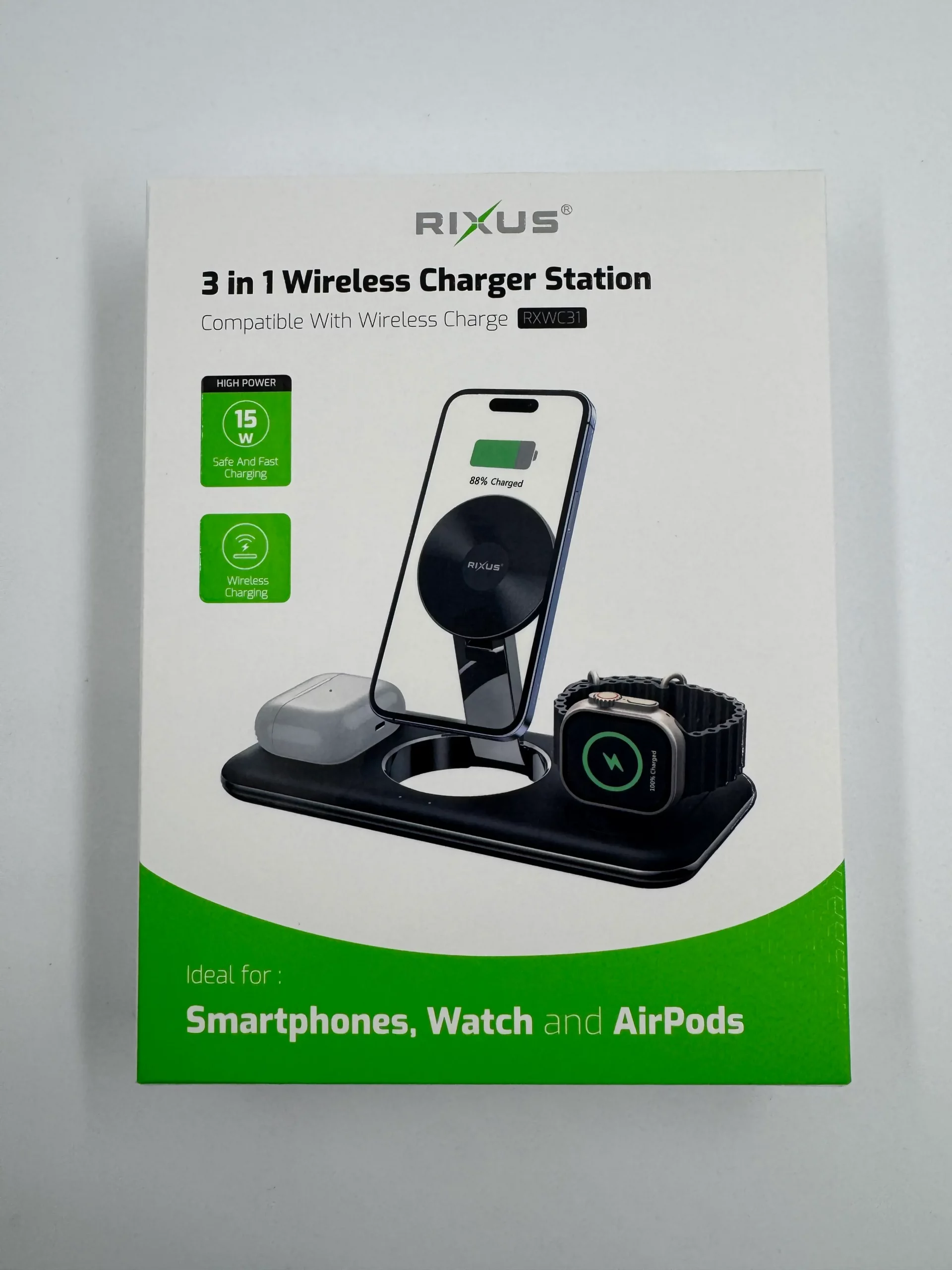 La station de recharge RIXUS 3-en-1 Wireless Charger 15W allie performance et élégance pour simplifier ton quotidien.