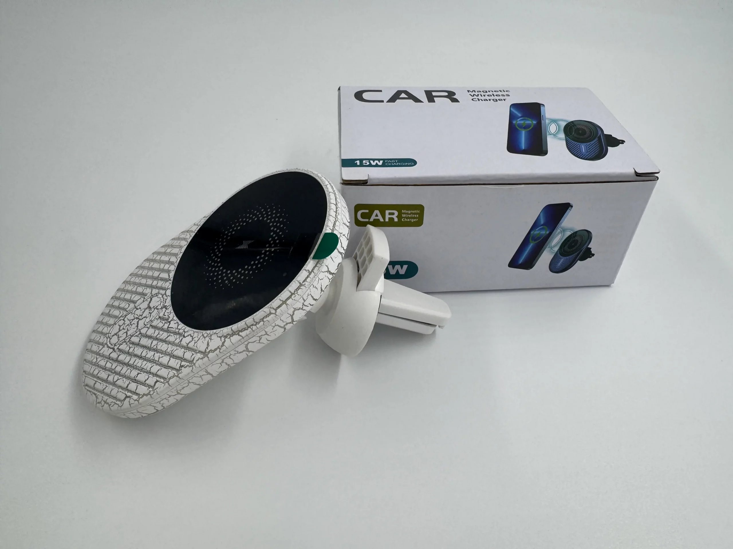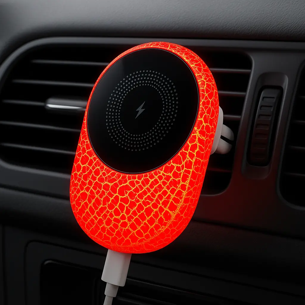 Son système magnétique puissant assure un maintien sécurisé, idéal pour les iPhone MagSafe et les appareils compatibles avec la technologie Qi. Le design effet craquelé lumineux s’illumine lors du branchement, apportant une touche moderne et esthétique à votre tableau de bord.