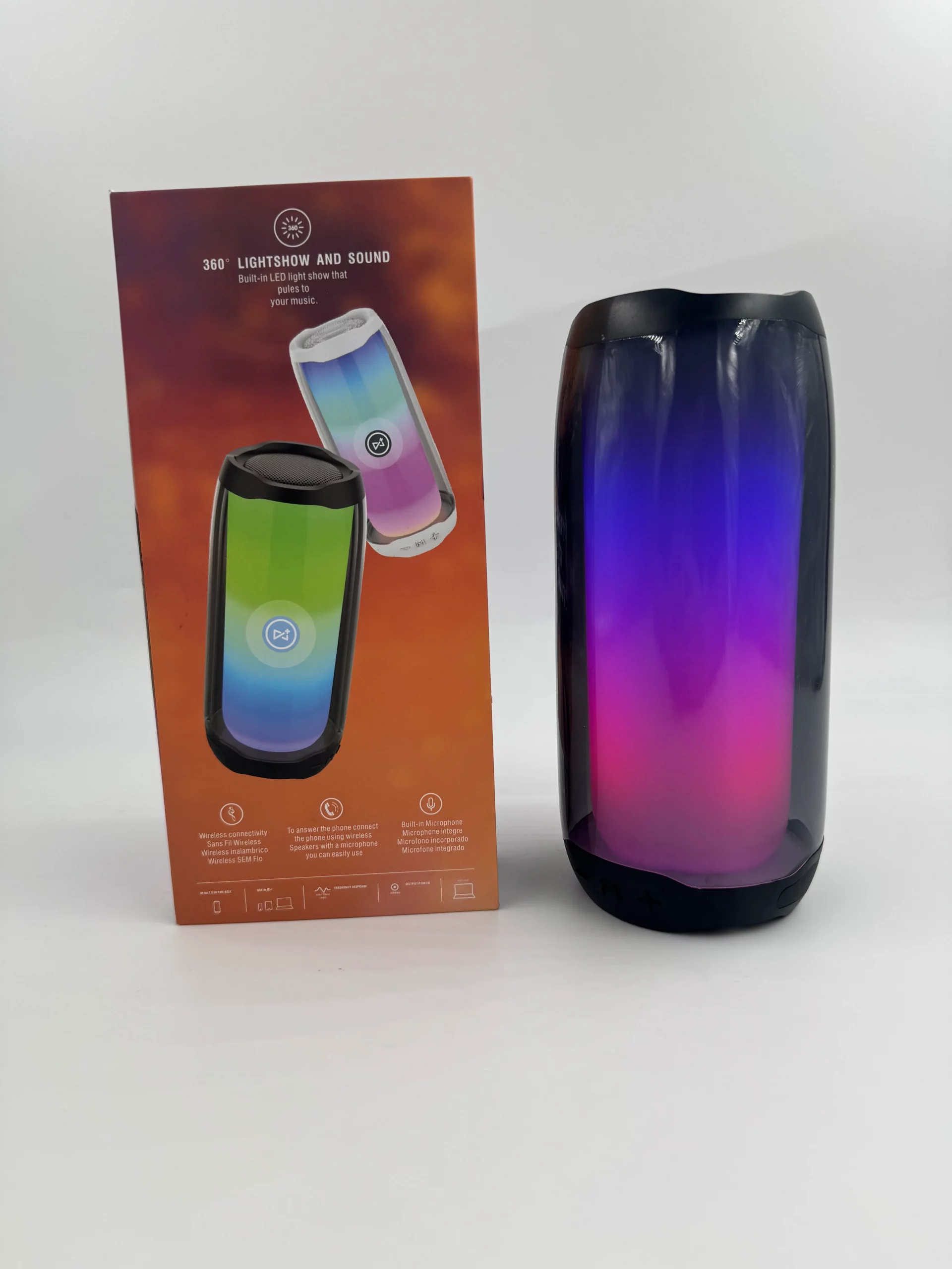 Son 360° immersif, éclairage LED multicolore réactif à la musique et connectivité Bluetooth pour écouter vos morceaux préférés partout. Idéale pour vos soirées, vos moments de détente ou vos déplacements.