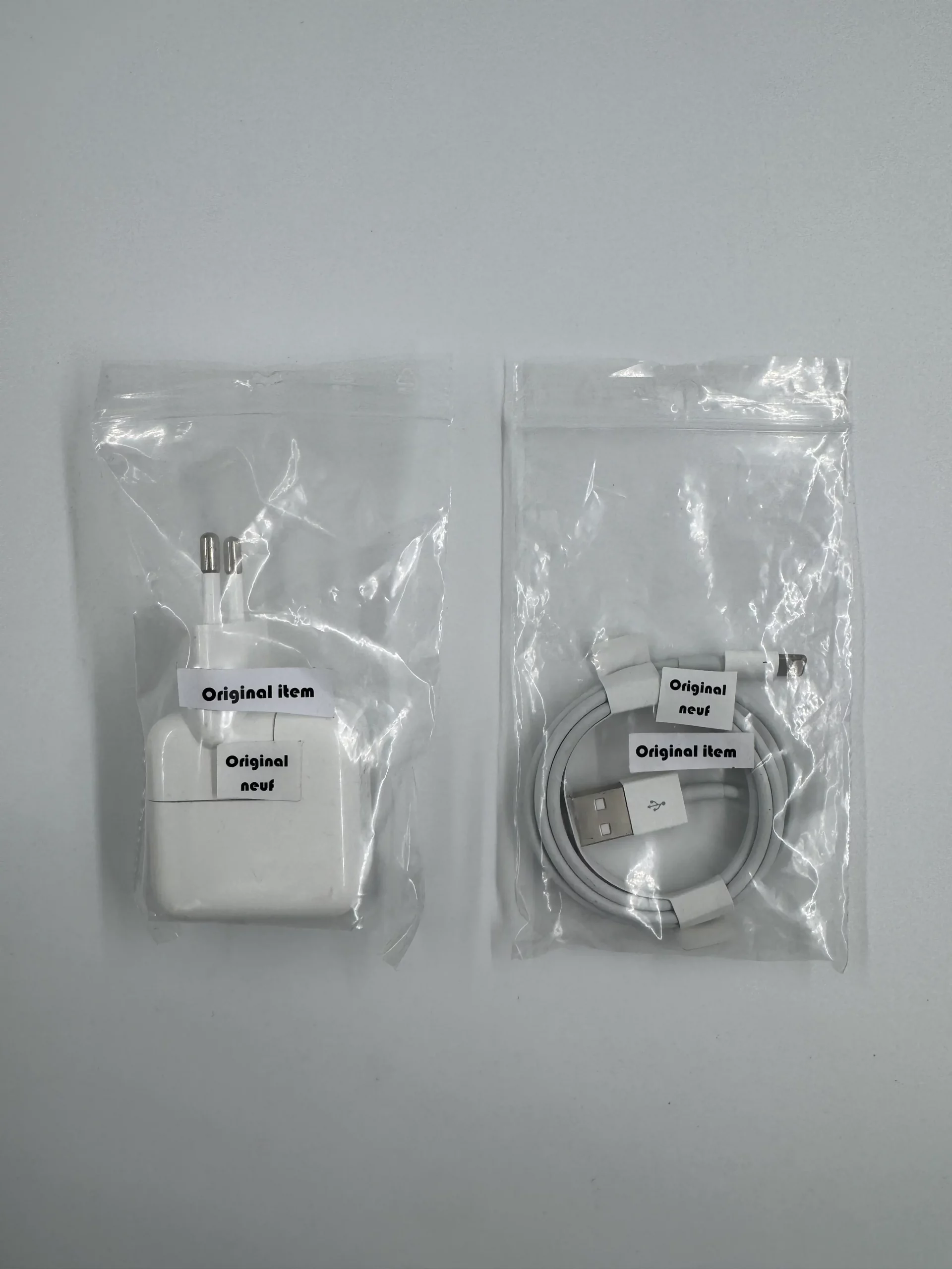 Les deux produits sont originaux, neufs et certifiés Apple, garantissant une performance stable et une protection optimale contre les surtensions et surchauffes.